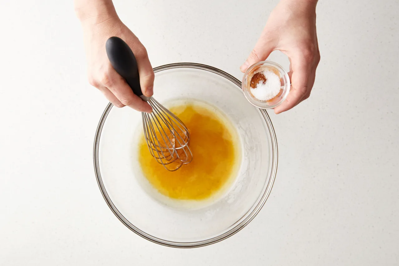 Place all the following: oil, honey or maple syrup, cinnamon, and salt in a large bowl and whisk to combine.