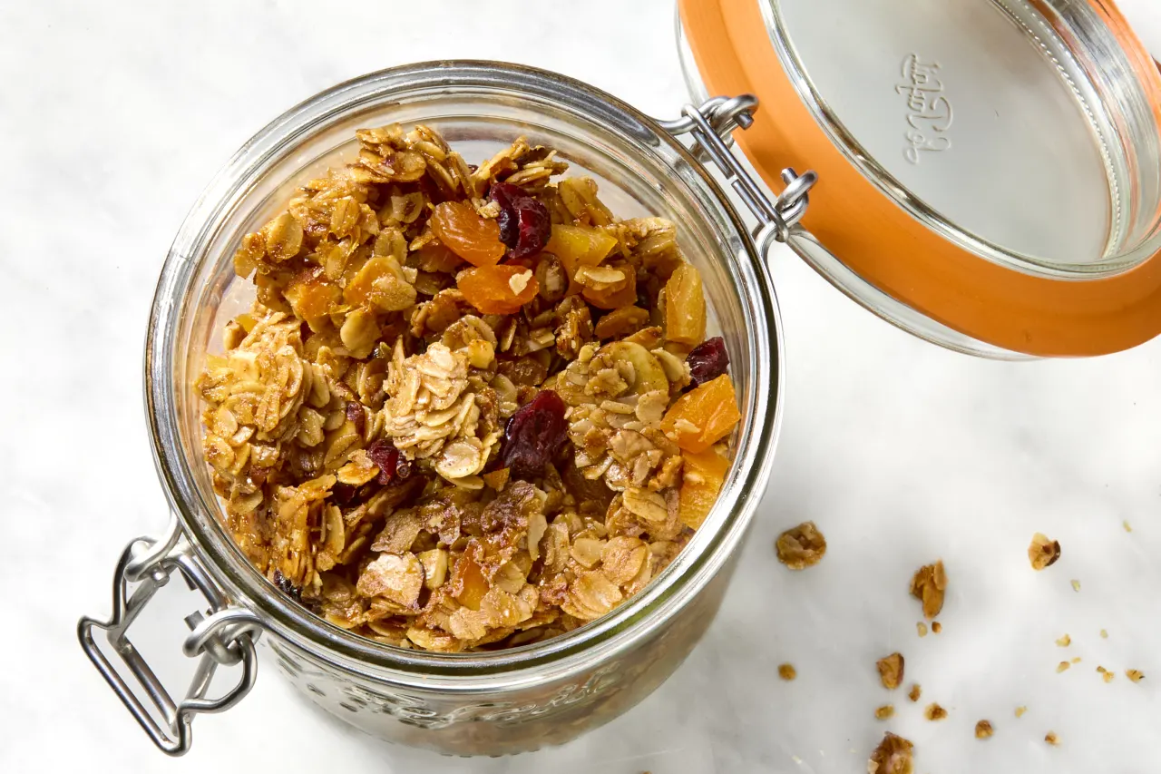 Transfer the cooled granola to an airtight container for long-term storage at room temperature.